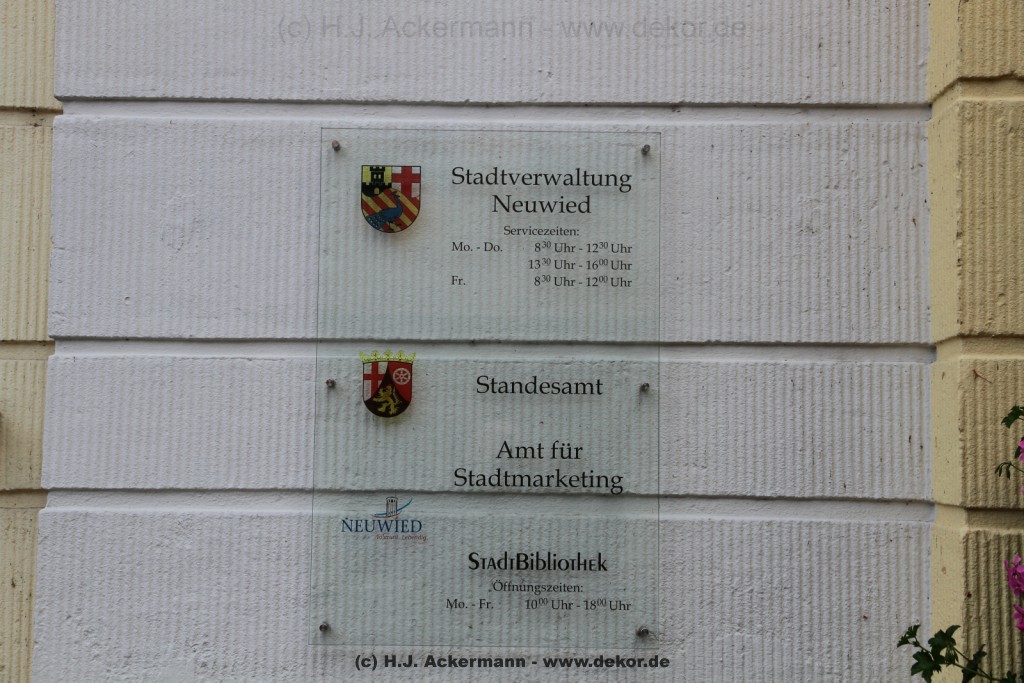 Neuwied ist die Kreisstadt des Landkreises Neuwied und gehört zu Rheinland-Pfalz. Die Stadt liegt am rechten Rheinufer an der Mündung des Flusses Wied.